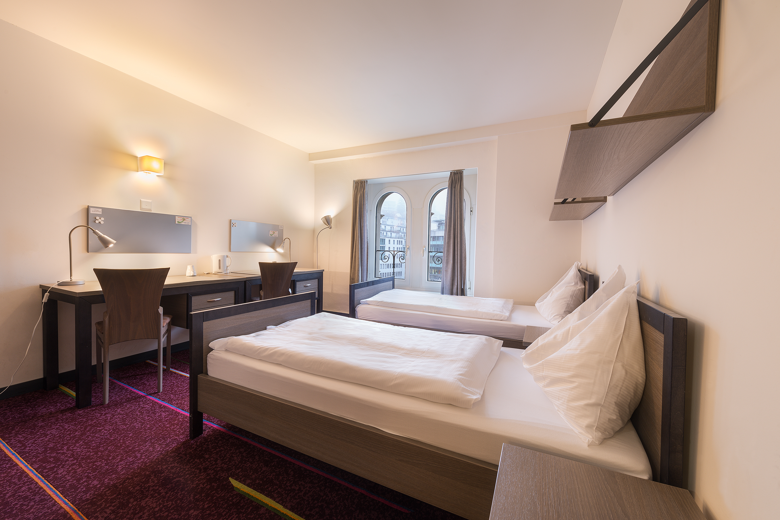 루체른 캠퍼스는 다양한 룸이 있으며 모든 방은 모던하고, 학생들이 집처럼 느낄 수 있도록 편안하며, 공간감을 제공하고 있습니다. 방은 메인 캠퍼스 빌딩에 위치하고 있으며 옆의 라임라이트 빌딩에도 있습니다. 모든 룸은 금연실로 운영되며 마지막 층의 방들은 도시의 멋진 뷰와 루체른 호수를 바라 볼 수 있는 발코니가 있습니다.