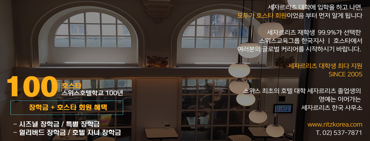 2022년도 진학을 대비하시는 학생들의 발걸음이 분주해지는 11월이네요. 미국 등지의 일반 대학과 달리 실무 위주로 수업하는 대학인 스위스 호텔학교는 호텔 전체에 대한 경영 리더십을 키우고자 하는 학생들이 많이 입학을 하고 있습니다.